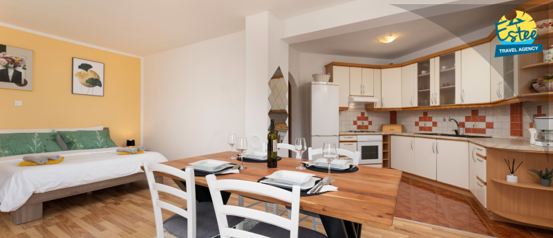 House Adela is located in Polje, 2000m from the sea. Studio (45m2) can hold up to 3 people. It has kitchen with dining area and a living room with double bed and sofa for extra person and bathroom. Apartment has air conditioning. Internet is provided. Guests have a parking space.