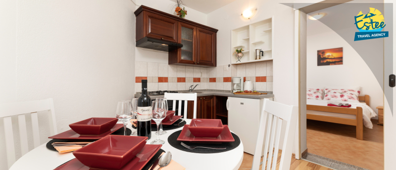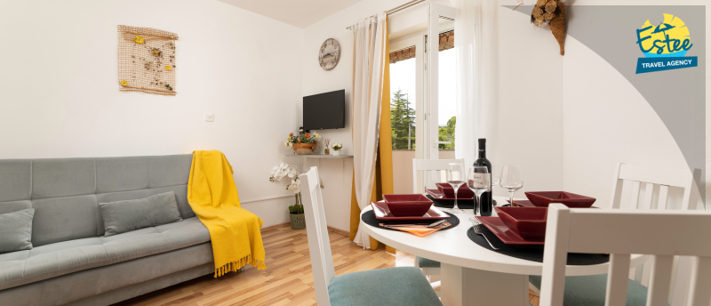 House Adela is located in Polje, 2000m from the sea. Apartment (40m2) can hold up to 3 people. It has kitchen with dining area and a living room with sofa for extra person, bedroom with double bed and bathroom. Apartment has air conditioning. Internet is provided. Guests have a parking space.