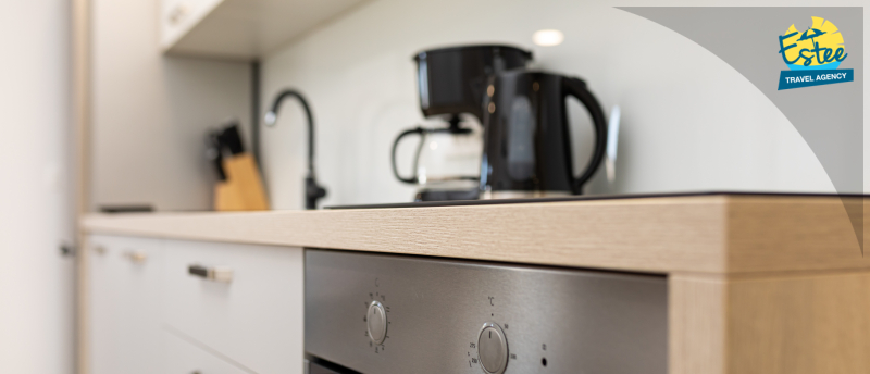 Electric kettle, Coffee machine, Airconditioning, SAT TV, Tiles, Oven, Refrigerator/freezer combination, Electric cooker, Extra bed available , Balcony with a sea view, Sofa bed for one additional person, Covered terrace, Microwave