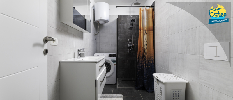 Bathroom with shower and WC, Towels (1 large, 1 small/per person and week), Washing machine, Hairdryer