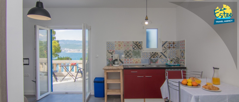 Beste Lage im Zentrum des idyllischen Ortes, nur wenige Minuten zu Fuss vom Strand (Betonplateau). Wunderbarer Blick von der geräumigen Terrasse auf die Adria und das gegenüber liegende Festland mit beeindruckender Bergkulisse. Gehobene Ausstattung, modern und geschmackvoll. Bad sehr stylish. Grundausstattung an Toilettenartikeln, Flasche Mineralwasser sowie ausreichend Toilettenpapier wären angemessene Verbesserung. Der rückwärtige, etwas versteckt liegende Eingangsbereich verdient bessere Pflege und unbedingt stärkere Beleuchtung (Treppe in den Garten komplett im Dunkel!). Zu beachten ist, dass eine zweite Terrasse zum benachbarten Apartment gleich nebenan liegt (getrennt lediglich durch Pflanzenkübel). In unserem Fall war leider sehr störend, dass die darunterliegende riesige Terrasse von lautstarken Gästen (insgesamt 6!) bevölkert wurde. Da dieses von einem anderen Vermieter betrieben wird, gab es auch keine Möglichkeit zur Intervention.