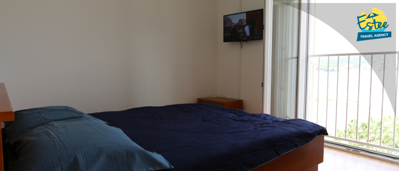 Laminated wood flooring, French bed, Bedroom with sea view, SAT TV