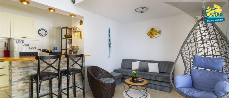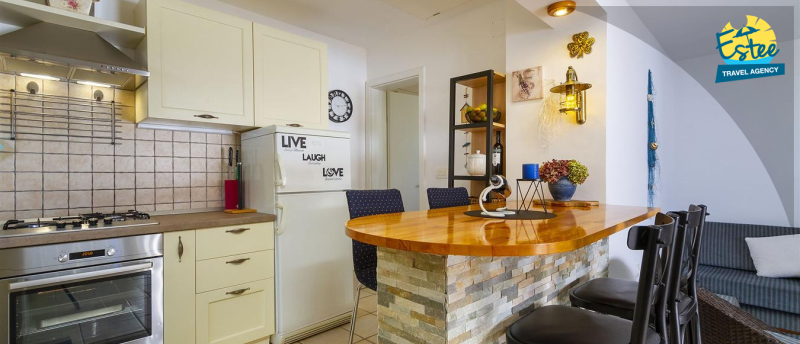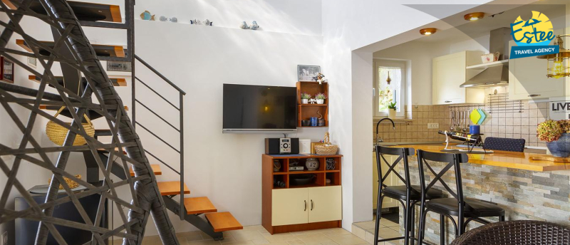 Big terrace for your convenience, sitting area, grill area, deckchair area all just for you. For additional atmosphere there is a beautiful panoramic view to the sea, Saint Marco island, Krk bridge.