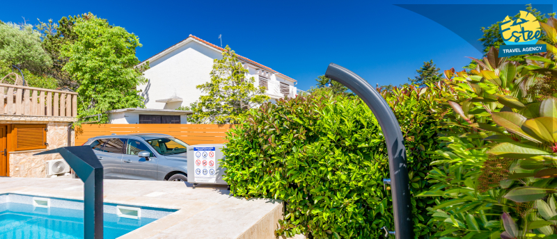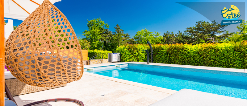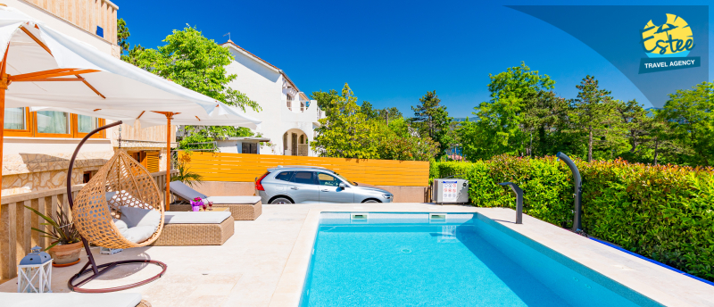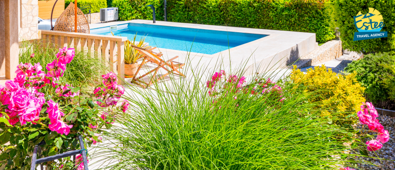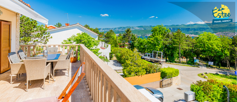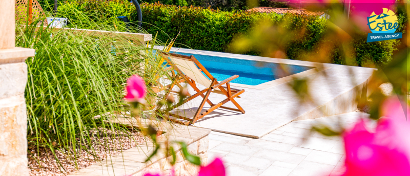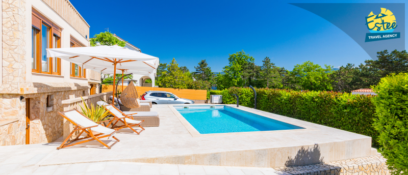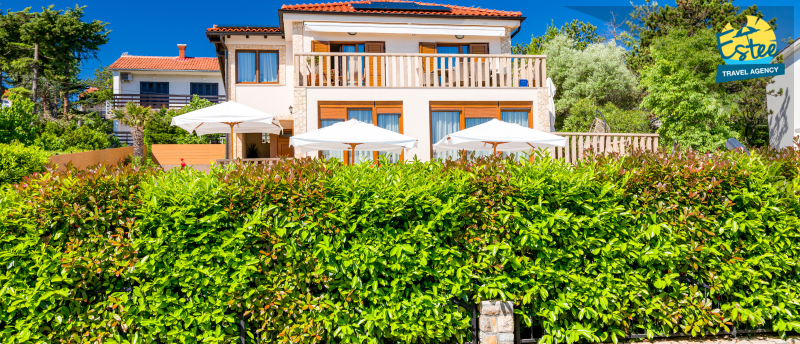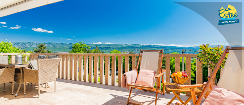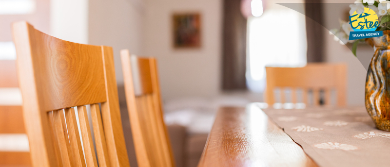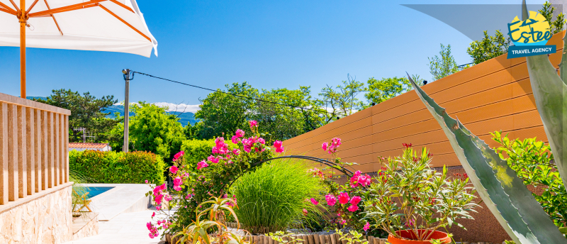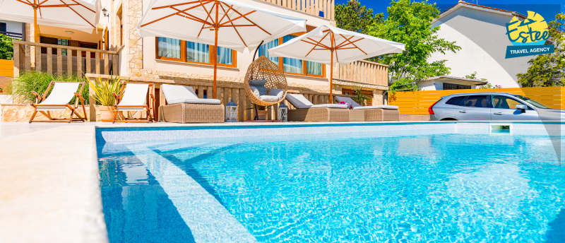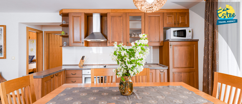 Apartment (60m²) situated on the 1st floor with big balcony, for 3-5 persons with private heated pool.
