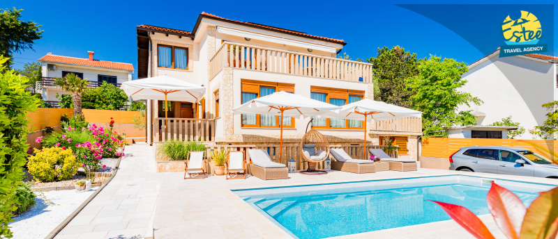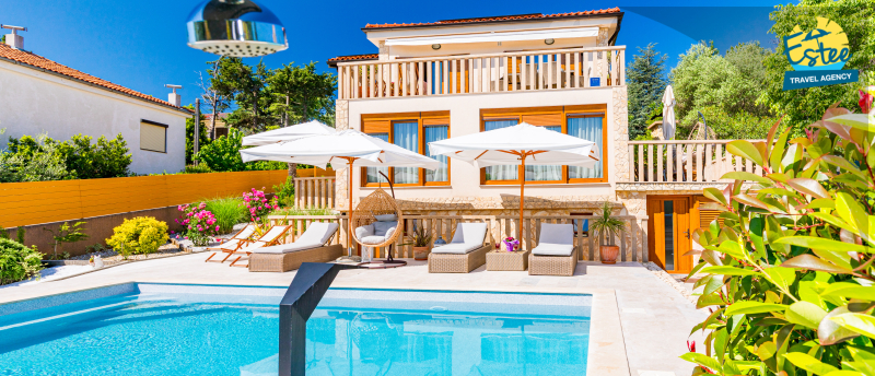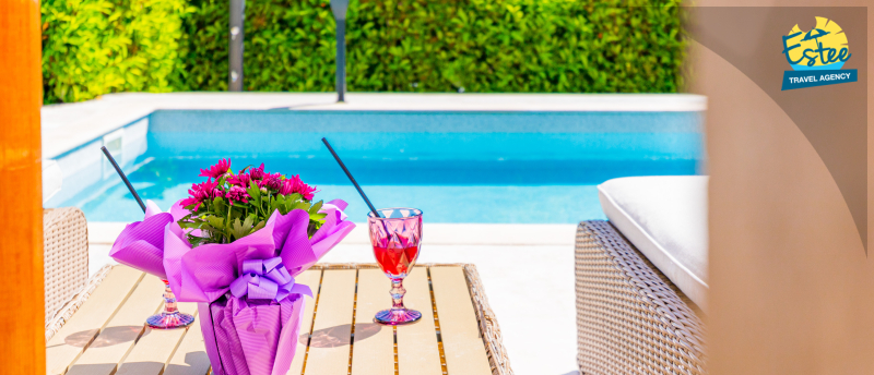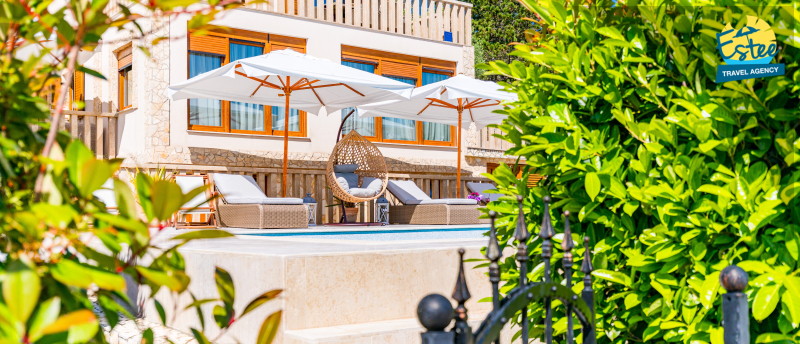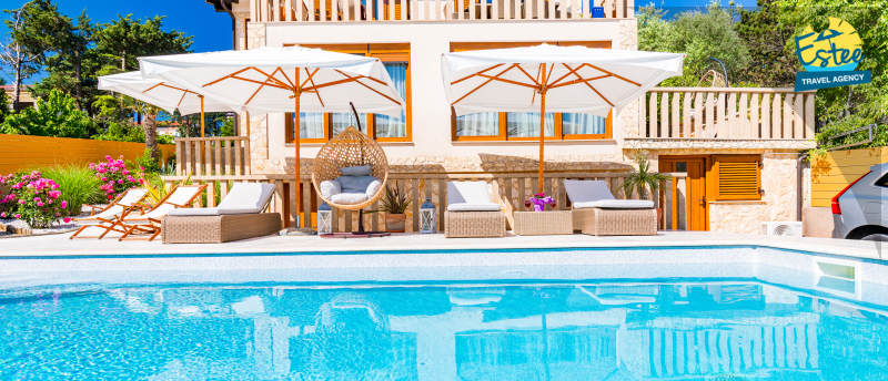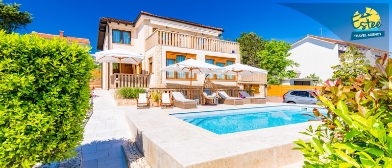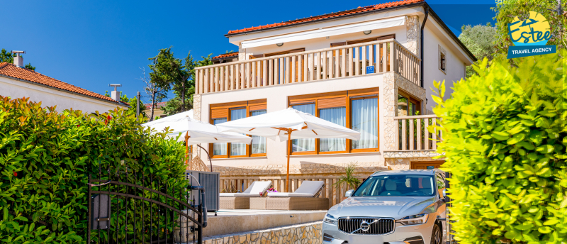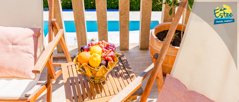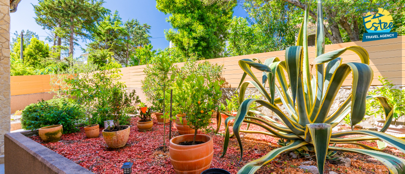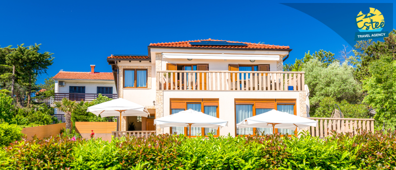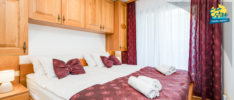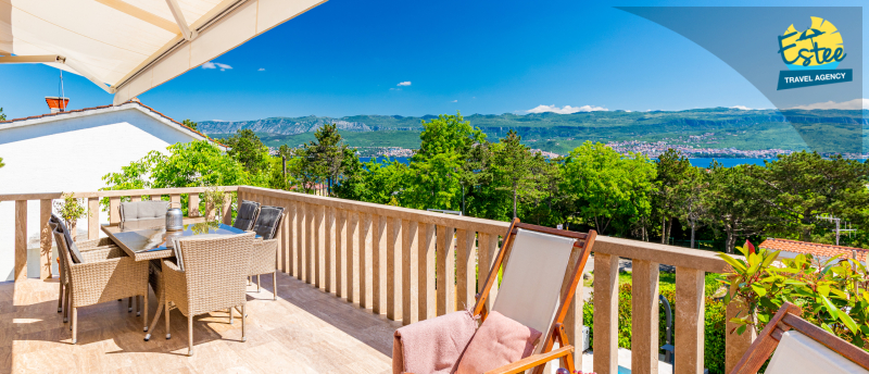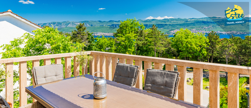 Apartment (60m²) situated on the 1st floor with big balcony, for 3-5 persons with private heated pool.