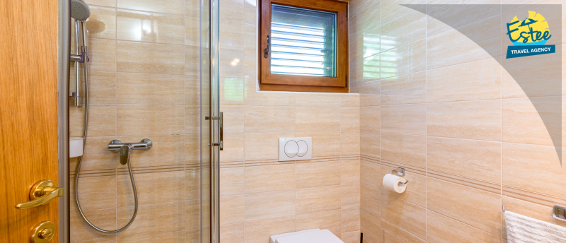 Bathroom with shower and WC, Towels (1 large, 1 small/per person and week), Hairdryer