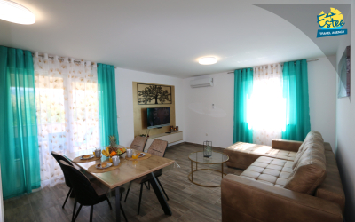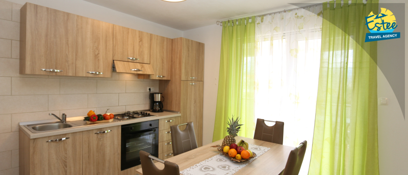 Apartment is new and very nice equipped. It is near the beach. Apartment has dining room, living room and kitchen as one unit. In living room is sofa for two people and separated bedroom with double bed. Bathroom has a shower and WC. Towels and bed linen are inside. Apartmet has aircondition and internet included in price.