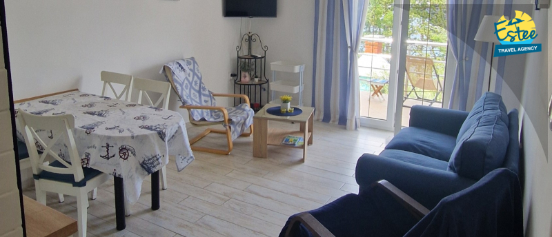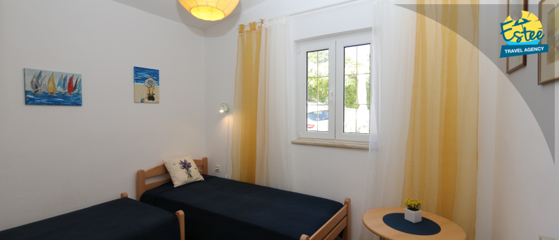 House Sanjug is located in Šilo, on an idyllic location surrounded by nature, 50m from the sea. There is only one Apartment in the house and it is on the 1st floor which can hold up to 4 people. It has 2 bedrooms, a bathroom, a toilet, a living room with a kitchen and dining area, with a balcony (10m2) with a beautiful sea view. Internet and air conditioning are included in price. Guests have a parking space.